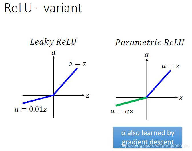 - 如果 a_i> 0,则 f 变为 leaky ReLU