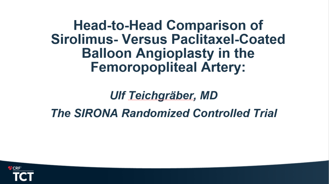SIRONA研究:西罗莫司涂层球囊治疗股腘动脉疾病不劣于紫杉醇涂层球囊