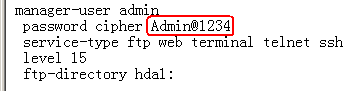 - 在PC上解压缩该文件,得到vrpcfg.cfg,使用文本编辑工具修改配置文件中的管理员密码。此处以修改管理员admin的密码为Admin@1234为例进行说明。