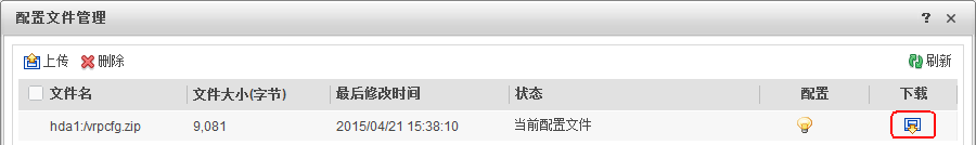 - 选择“系统 > 配置文件管理”,单击“下次启动配置文件”所在行的“选择”。在“配置文件管理”页签中,导出最近一次保存的配置文件。