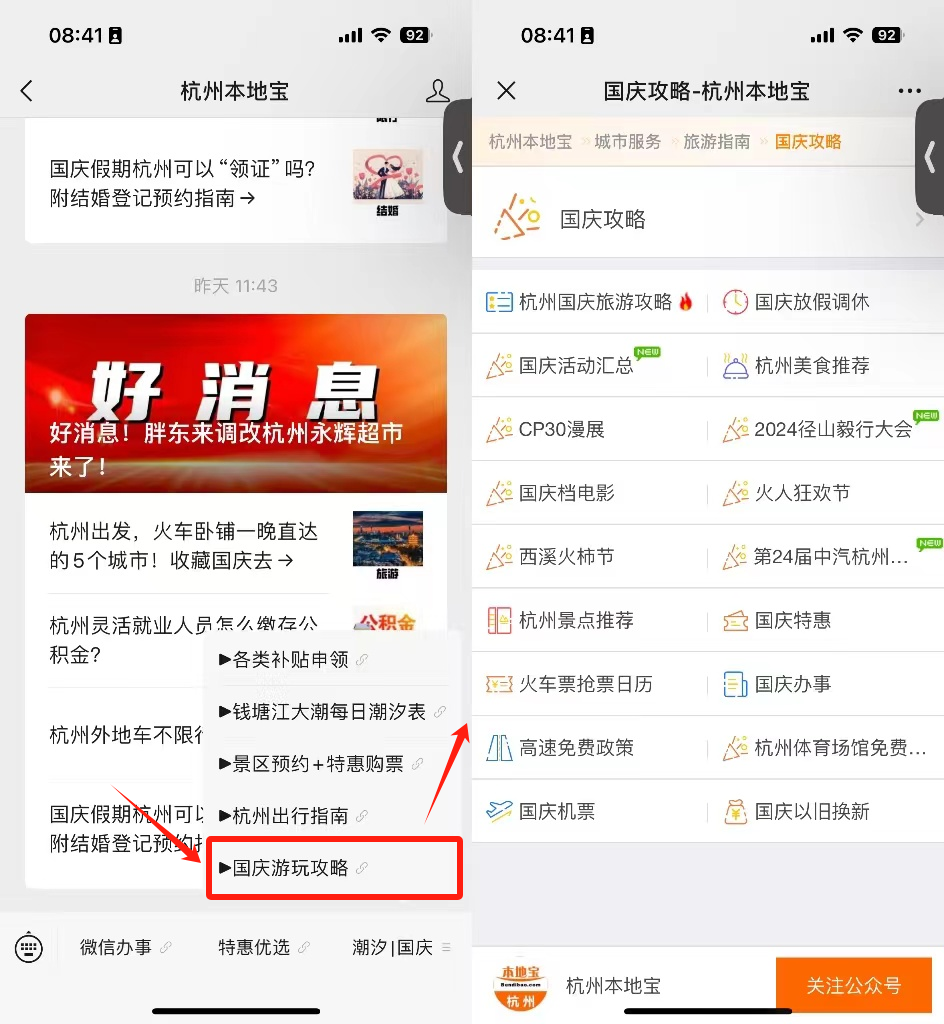点击↑上方蓝字,速戳底部菜单栏【微信办事】【特惠优选】【潮汐|国庆】获取你想看的内容