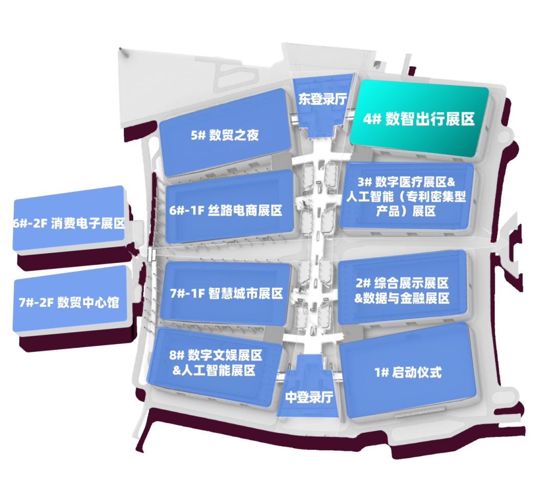 1个综合展区和丝路电商、数据与金融、人工智能、智慧城市、数字文娱、数智出行、数字医疗、消费电子8个特色数字产业展区