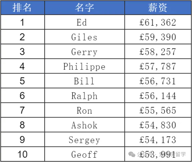 收入倒数第一的是Reece,年收入仅22952英镑;