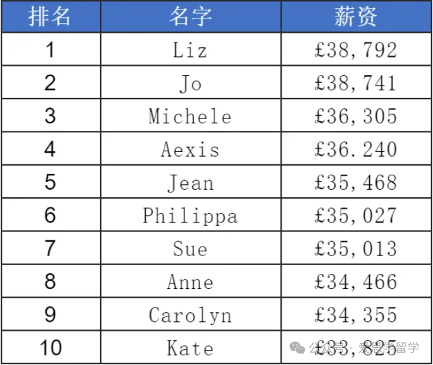 收入倒数第一的是Paige,年收入仅20,190英镑;