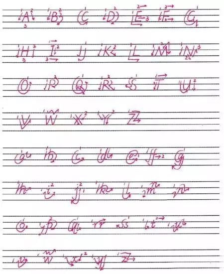 字母要按一定的笔划顺序书写,其书写笔顺如下:(请注意书写的格式和大小写的区别)