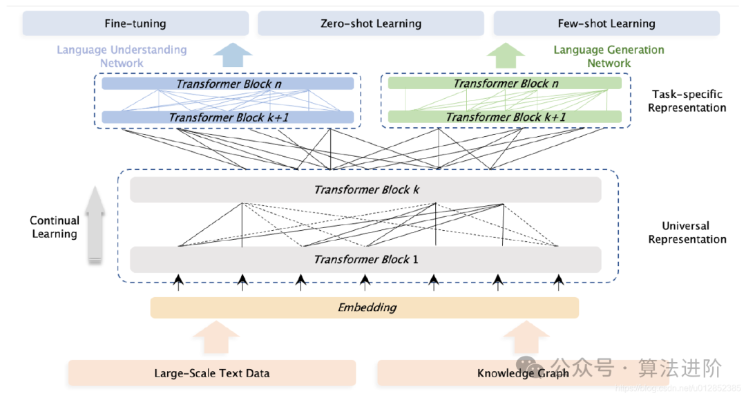 训练过程:包括数据收集与预处理、模型选择、预训练和微调。预训练使用无标签数据学习语言结构和语义;微调则针对具体任务使用有标签数据调整模型参数。