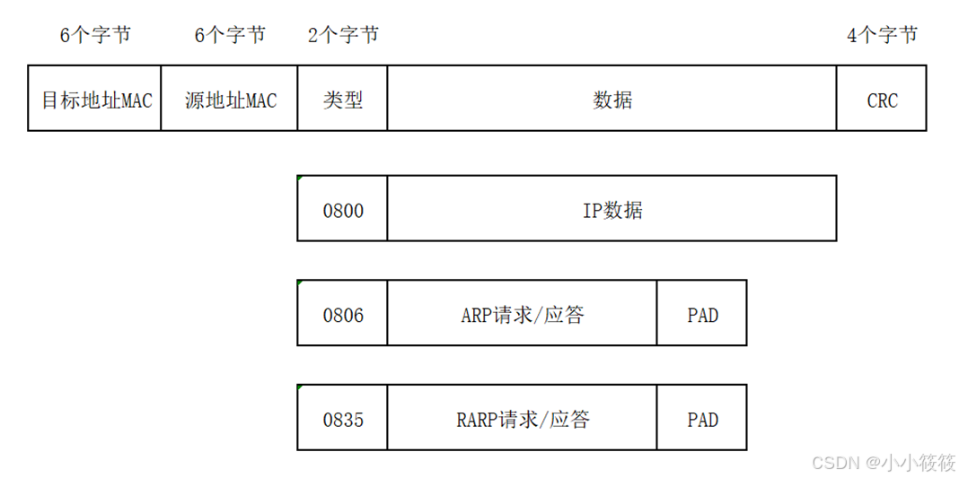 我们要处理的数据都在增强分组块中,对增强分组块中的分组数据进行解析,可以获取目标地址MAC,源地址MAC,根据类型判断是IP数据,还是ARP或者RARP:
