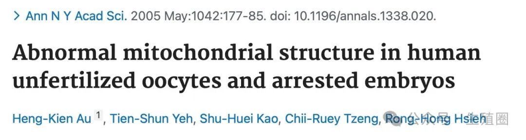 [1]Abnormal mitochondrial structure in human unfertilized oocytes and arrested embryos. Ann N Y Acad Sci. 2005 May;1042:177-85. doi: 10.1196/annals.1338.020.