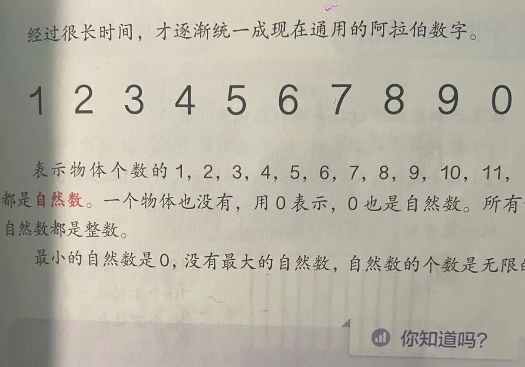 但女儿却指着书说:“爸爸,你记错了吧,你看这里写着,0是自然数。”