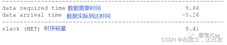 B:时间检查的裕量(Slack)指的就是:所需时间与实际到达时间之间的差值。如下图的时序报告截图: