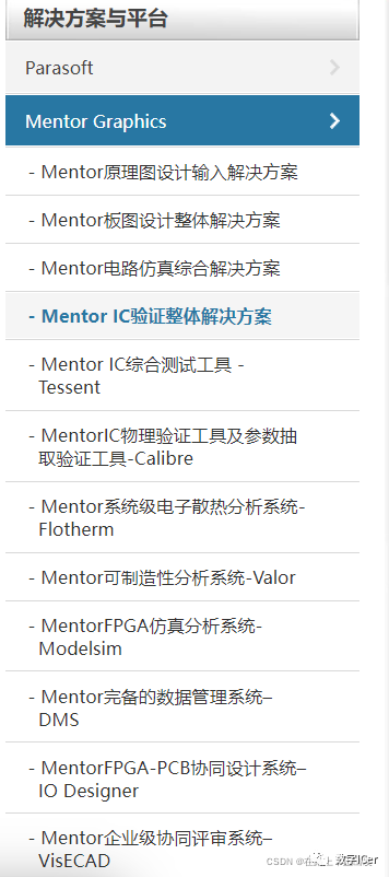 Mentor Graphics 公司:ModelSim DE、Calibre、Tessent、Valor、Questa CDC等,以下是其服务方案截图: