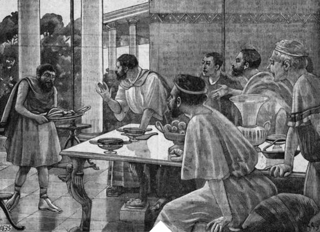 主人吩咐奴隶Ésope用最好的菜备宴,Ésope备了一餐动物舌头宴。主人怒气冲冲地质问他,他解释说:有了舌头才能讲话、学习、宣讲,所以“舌菜”是最好的菜。第二天,主人让他准备最坏的菜,没想到他依然备了舌头宴。主人刚要发火,Ésope却说:祸从口出,所以舌头也是世上最坏的东西。