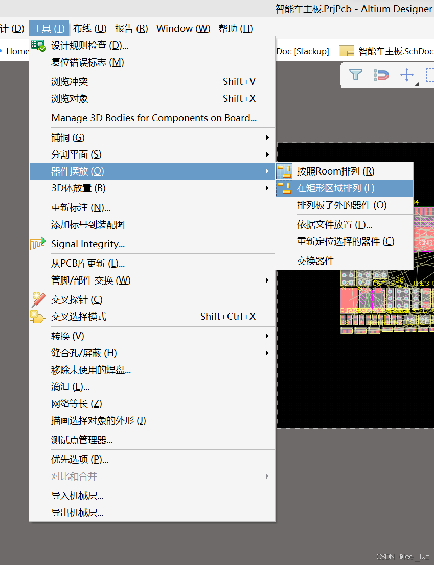 元器件快速放置,框选完全部元器件后,点击矩形排列后,在板子内框选范围即可,器件就会选中的框内排列