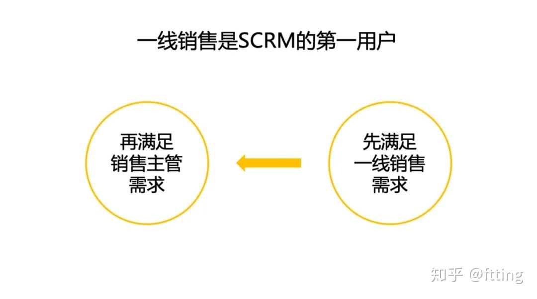 所以企业在选型时的逻辑应该是先满足一线销售的需求,看一线销售能否真正把产品用起来,再去看这款产品能不能满足销售主管的需求。而不是销售主管觉得这款产品不错,买了之后却发现一线销售用不起来,最终绕了一圈回到原地,费钱也费精力。