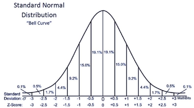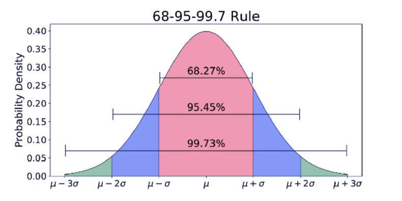 99.7% 的数据在平均值(μ)±3 个标准差(σ)内。