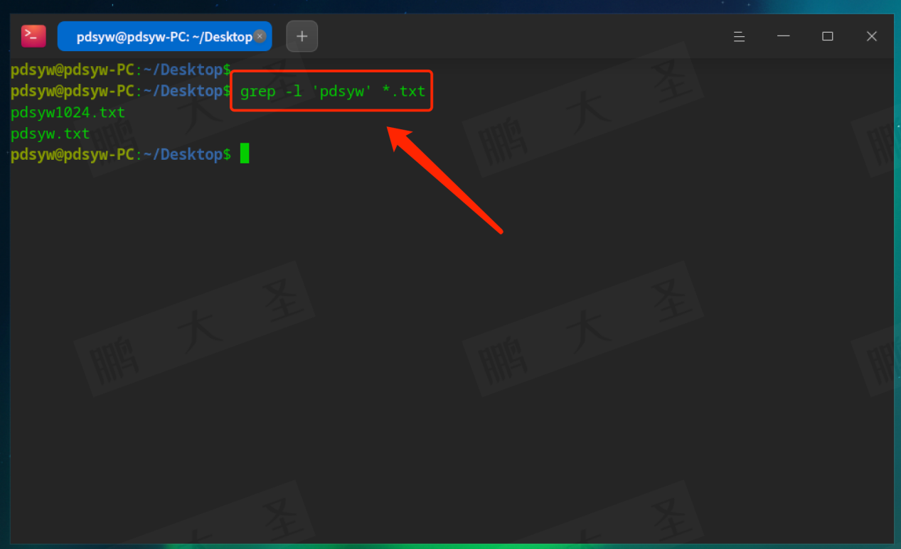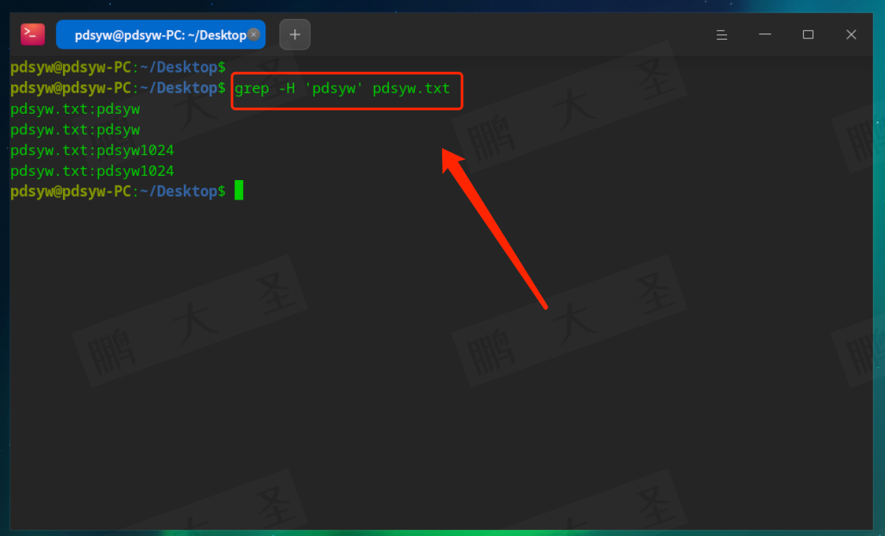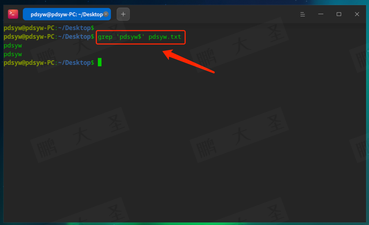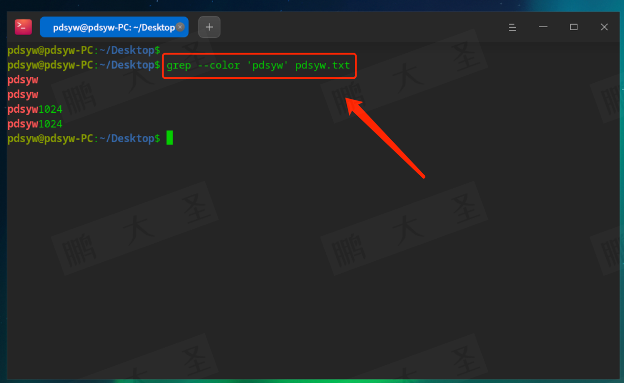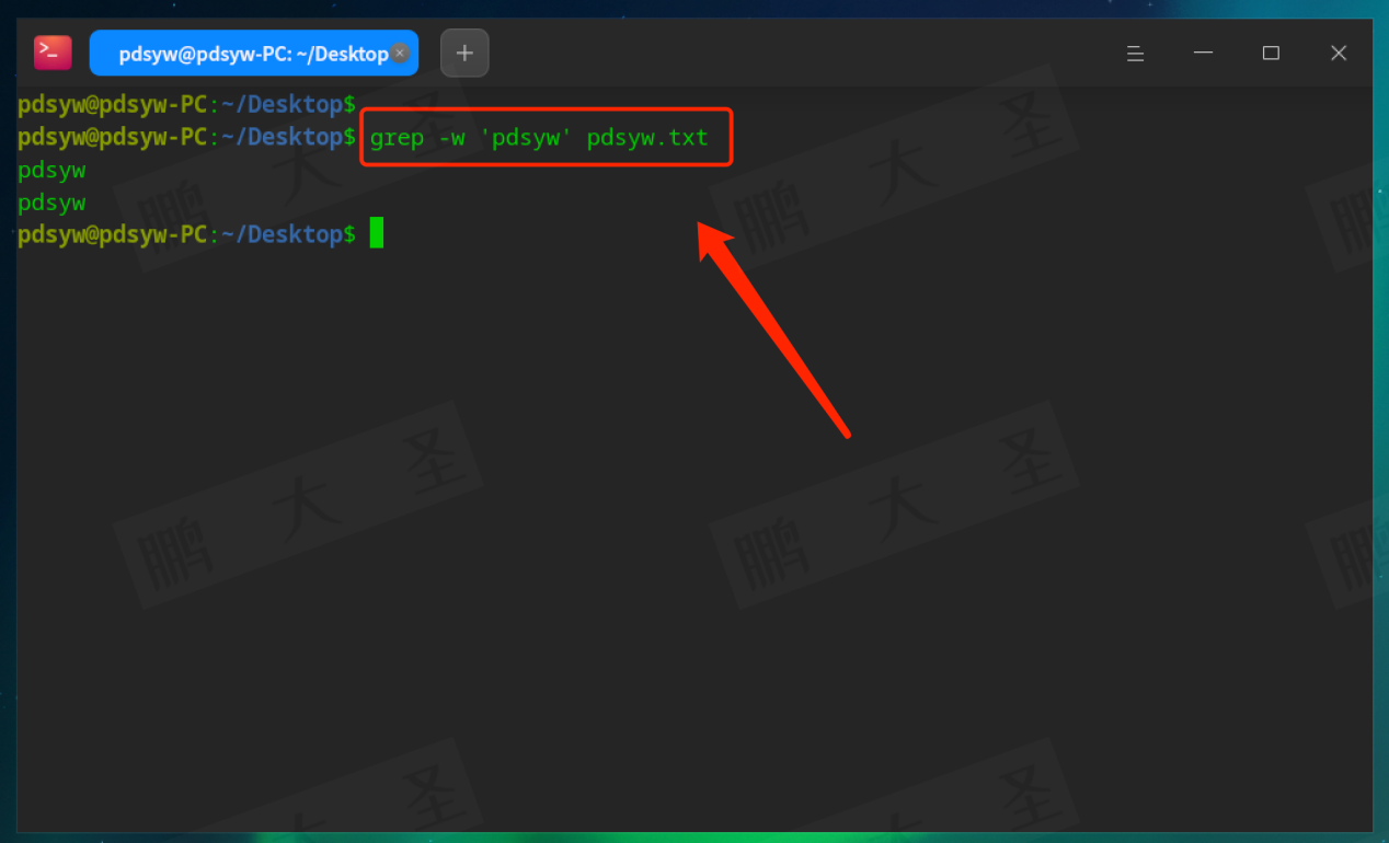 例如,在pdsyw.txt文件中查找包含“pdsyw”的行: