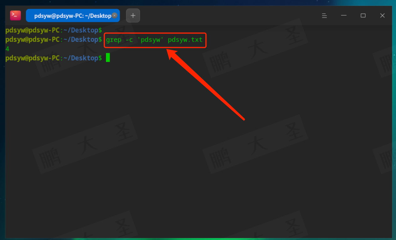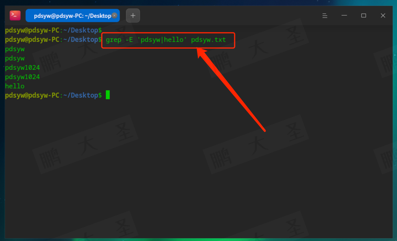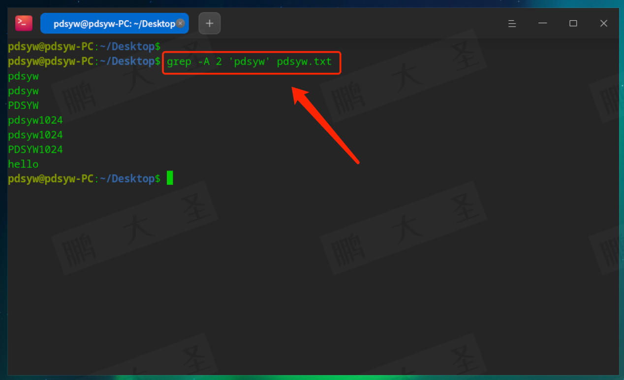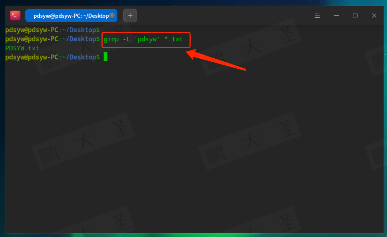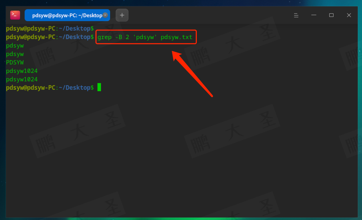 例如,在pdsyw.txt文件中查找包含“pdsyw”的行: