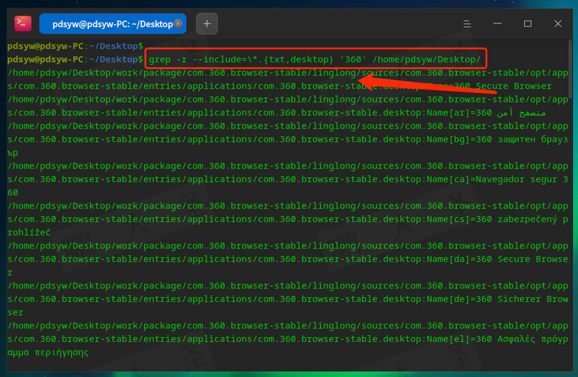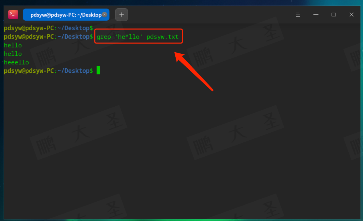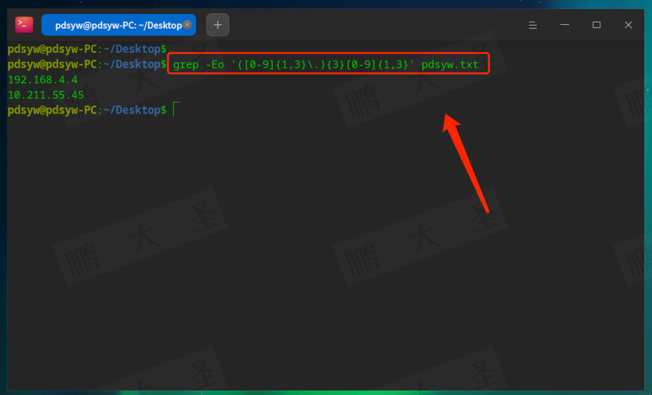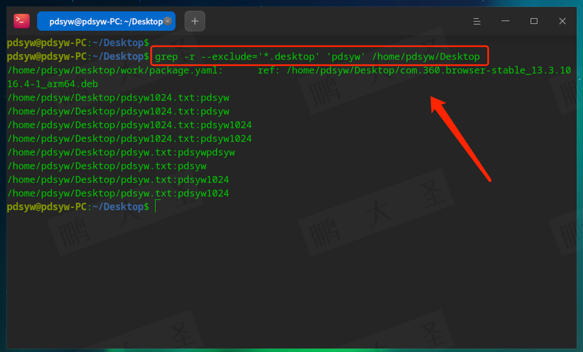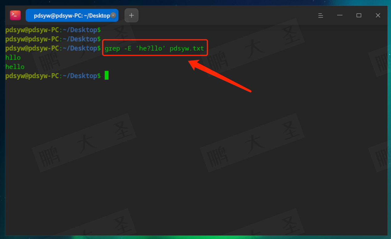 例如,在pdsyw.txt文件中查找包含“pdsyw”的行: