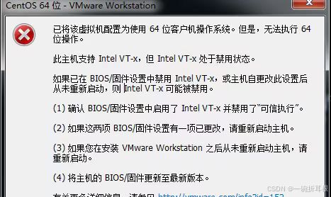 但是在打开的虚拟机有个错误,报错说VT-X禁用状态,就是本机的硬件虚拟化技术是关闭的。进行BIOS引导系统打开设置为enable就行