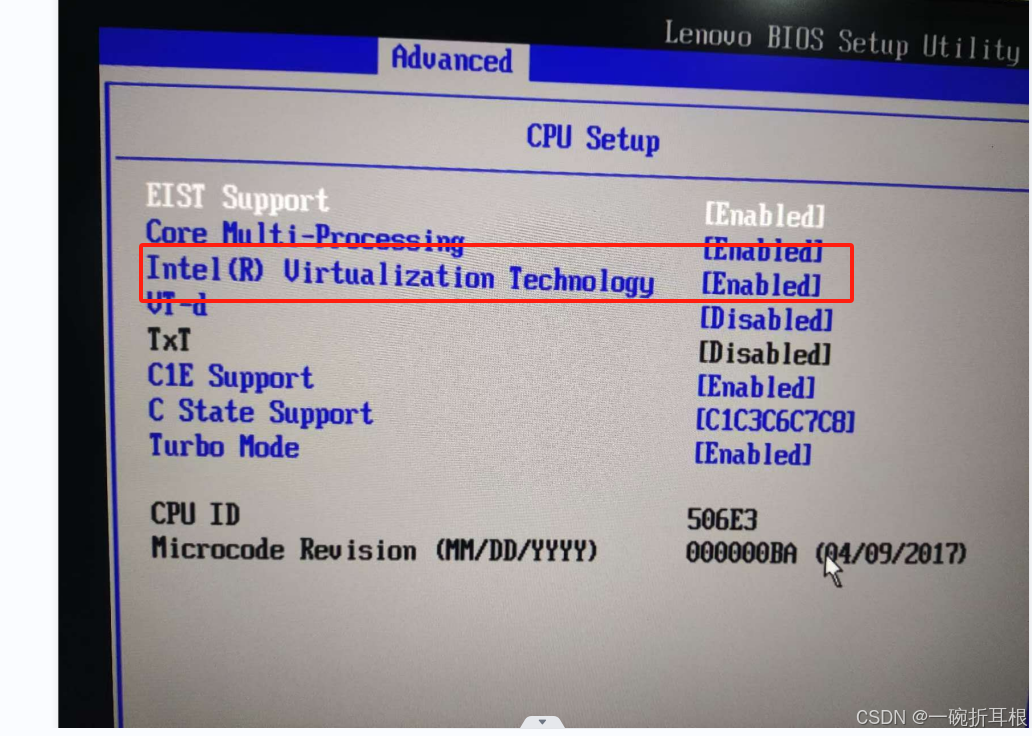 开机进入BIOS引导界面。把下图的选项改成enable。