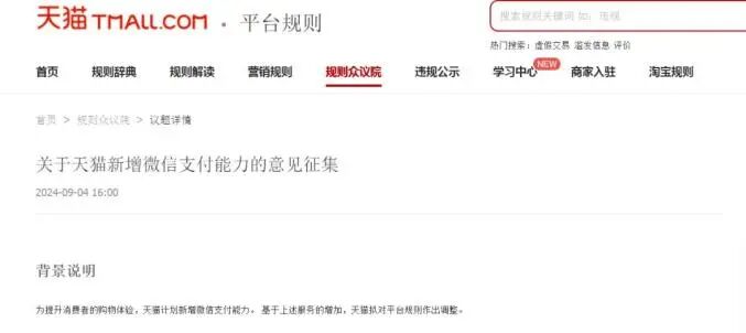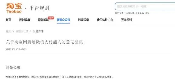 淘宝优先支付方式怎么设置(淘宝优先支付方式怎么设置密码) 科技前沿 • 2025-06-12 13:12 • 阅读 39 淘宝优先支付方式怎么设置(淘宝优先支付方式怎么设置密码)继昨天宣布计划新增微信支付能力后 淘宝今天再次发布公告 明确 9 月 12 日后逐步向所有淘宝天猫商家开通微信支付 为提升消费者的购物体验 淘宝网计划新增微信支付能力 并于本公告公示七天后逐步向所有淘宝网卖家开放 基于上述服务的增加 淘宝网相应升级平台规则 主要变化为 支付服务商相关的名称 账户 余额 交易额等表述统一规范为 支付机构 支付账户 支付账户余额 订单交易额 大家好,我是讯享网,很高兴认识大家。 讯享网 继昨天宣布计划新增微信支付能力后,淘宝今天再次发布公告, 明确9月12日后逐步向所有淘宝天猫商家开通微信支付。 为提升消费者的购物体验,淘宝网计划新增微信支付能力,并于本公告公示七天后逐步向所有淘宝网卖家开放。 基于上述服务的增加,淘宝网相应升级平台规则,主要变化为:支付服务商相关的名称、账户、余额、交易额等表述统一规范为“支付机构”、“支付账户”、“支付账户余额”、“订单交易额”。本次调整于2024年9月5日公示通知,将于2024年9月12日生效。 截至记者发稿,目前部分商家已经逐步收到开通邀请。 淘宝商家开通界面 天猫商家开通界面 【此前报道】 9月4日,话题“淘宝即将全面支持微信支付”冲上热搜榜首,引发公众关注。 9月4日,淘宝、天猫分别发布《关于淘宝网新增微信支付能力的意见征集》和《关于天猫新增微信支付能力的意见征集》。背景说明为:为提升消费者的购物体验,淘宝网、天猫计划新增微信支付能力。基于上述服务的增加,淘宝网、天猫拟对平台规则作出调整。 作为目前淘宝主要的支付服务方,支付宝回应表示,开放、协作、创新、共享是互联网的基本精神,也是行业发展的大势所趋。支付宝会与淘天集团继续深化战略合作,加大科技创新和产品创新,为广大商家和消费者持续创造更大的价值。支付宝还在回应中称,开放造就更大的未来,支付宝将在互联网技术、AI技术产品和更广泛的生态加大开放合作,助力数字经济的生机与繁荣,也为支付宝平台打开更大的商业空间。 近年来,在央行的推进下,支付宝、微信、银联云闪付等主要支付机构之间的互联互通动作不断。 从2020年起,支付宝与中国银联就开始基于条码互联互通业务展开密切沟通和探索。2021年7月,银联云闪付率先开启了与支付宝的互通合作,双方在线上支付和线下条码互通等领域积极探索,为用户提供了更多元、更便捷的支付服务。截至目前,已有超3600万用户和数百万商家在淘宝APP使用着云闪付APP和银行APP便捷和优惠的安全支付服务,活跃用户、商户规模较上线初期均有大幅增长。 此后,淘宝又逐步接入了数字人民币、翼支付、和包等主流支付工具。 今年6月,银联网络迎来微信支付收款码场景的全面接入,推动条码支付互联互通取得新进展,为境内外广大消费者提供更多支付选择、更好支付体验。微信支付各类收款码实现向银联网络的全场景开放。目前,用户在微信各类收款码的“主扫”场景,打开云闪付APP即可实现扫码支付。 网友表示:“终于来了,等这一天太久了”“太好了”。 来源:淘宝网、澎湃新闻 编辑:李梦祝 责编:左开勋 吴雯雯 版权归原作者所有 如有侵权请联系我们 小讯 2025年工具类产品(工具类产品经理) 上一篇 2025-04-19 18:31 2025年impdp 参数(impdp参数) 下一篇 2025-06-16 23:33 相关推荐 2025年工具类产品(工具类产品经理) 1744551897 vue钩子函数执行顺序(vue 钩子函数) 1744551897 2025年msvcp140为什么会丢失(msvcp140dll丢失会有什么影响) 1744551896 2025年电路中ga是什么意思(ga在电路图中代表什么) 1744551896 sata接口跟nvme接口(sata3接口和nvme接口) 1744551895 2025年微信好玩的代码2024(微信好玩的代码整人) 1744551894 java爬虫和python爬虫区别(java爬虫与python爬虫的区别) 1744551893 2025年瓦罗兰特代码84(瓦罗兰特代码准星) 1744551893 2025年java阻塞队列使用(java阻塞队列生产消费者) 1744551892 2025年impdp 参数(impdp参数) 1744551899 清空了回收站的文件怎么找回(清空了回收站的文件怎么找回啊) 1744551899 2025年数据库基本常识(数据库基本术语) 1744551900 2025年mongodb数据库等保测评(mongodb数据库备份命令) 1744551901 我的世界设置时间指令是多少?(我的世界1.12.2调整时间指令) 1744551902 2025年webflux和springmvc的区别(springwebflux和springmvc) 1744551903 mysql添加主键约束语句(mysql添加主键约束语句是什么) 1744551903 2025年数据库基础知识面试(数据库基础知识面试真题) 1744551903 win10 samba共享服务(win10samba共享服务) 1744551904 版权声明:本文内容由互联网用户自发贡献,该文观点仅代表作者本人。本站仅提供信息存储空间服务,不拥有所有权,不承担相关法律责任。如发现本站有涉嫌侵权/违法违规的内容,请联系我们,一经查实,本站将立刻删除。如需转载请保留出处:https://51itzy.com/kjqy/143973.html