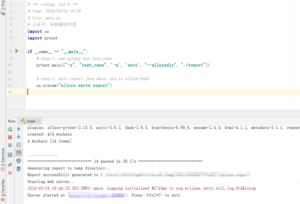 2、不关心执行顺序,简单地将 -n 参数设置为 auto,让 pytest-xdist 插件自动管理并行执行,通常是最简单也是最有效的方法。