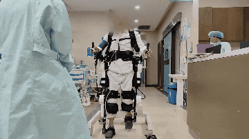 此外,我院还将下肢外骨骼机器人运用于ICU早期康复中,在充分评估患者安全的前提下,帮助长期卧床、生命体征稳定的患者,进行机器人辅助下直立训练,预防和改善直立性低血压、获得性衰弱的临床症状以及因长期卧床导致的各种并发症。早期科学的康复介入对于降低致残率、提高生活质量具有重要意义。