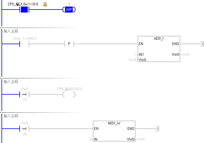 在设计程序时,有些程序是不需要执行,或达到条件才被执行,那么此时就需要使用到JMP跳转指令,跳转指令作用是:激活跳转指令后跳转到我输入的程序段继续执行。跳转指令可以使PLC的编程灵活性大大提高。
