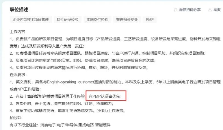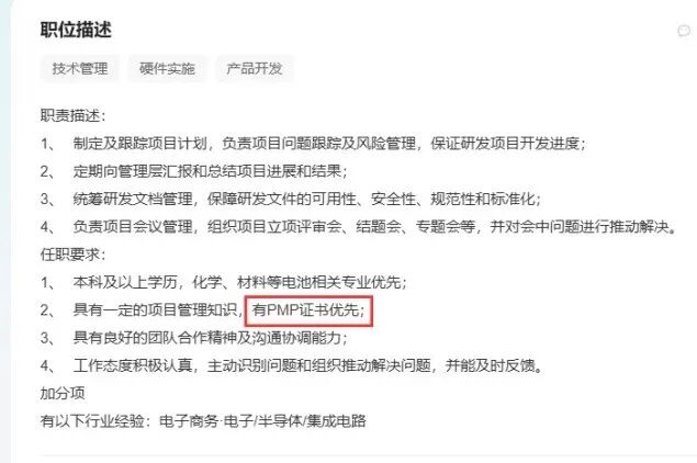 很多招聘信息中也会明确表明,有PMP®认证者优先。