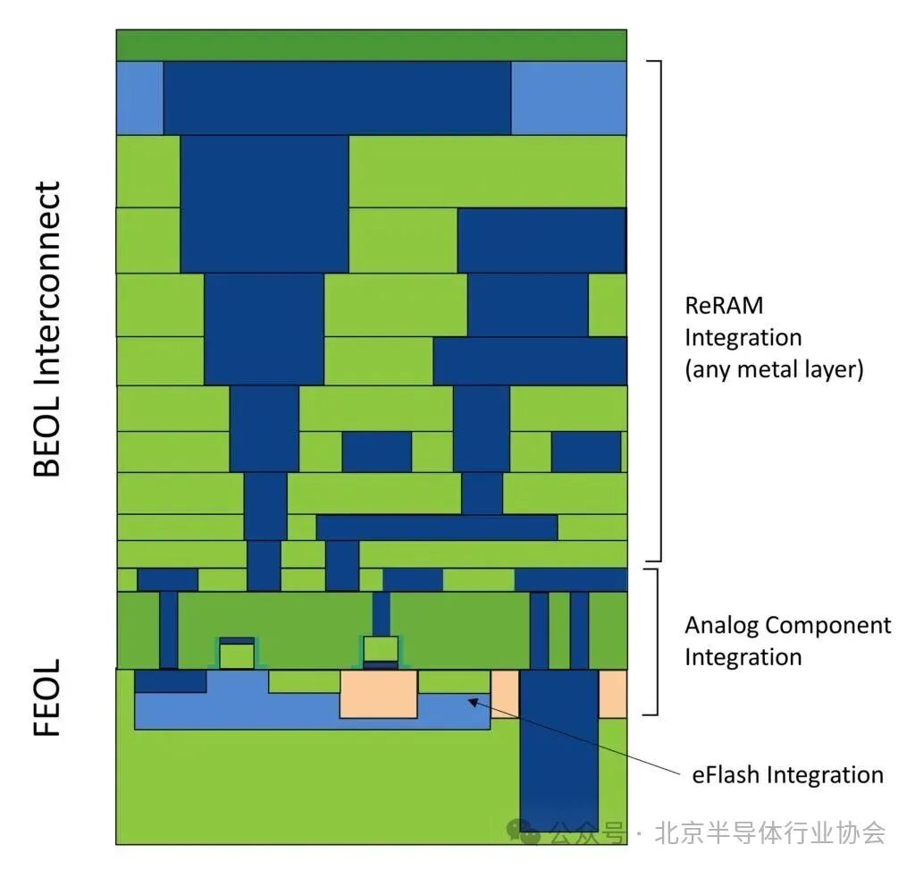 由于 ReRAM 集成在BEOL 中,因此无需在电源/模拟组件方面做出妥协