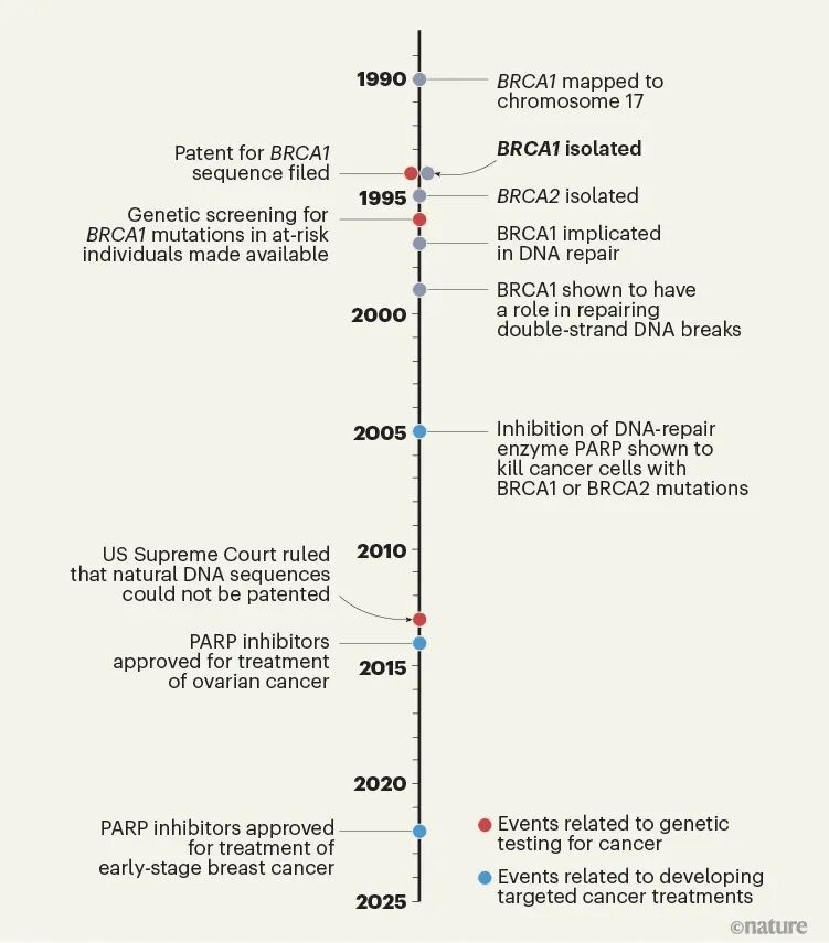 30 年前 BRCA1 基因的分离开启了乳腺癌和其他癌症基因检测的时代,引发了一场持久的专利之争,并最终导致了量身定制的癌症疗法。