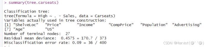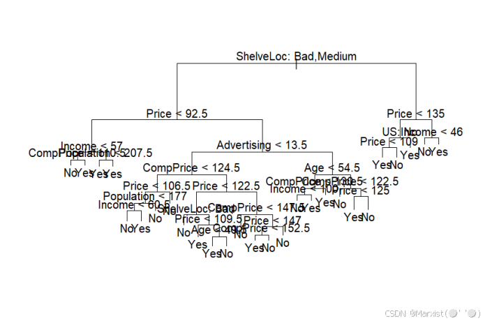 tree.carseats <- tree(High ~ . - Sales, Carseats)#建立分类树