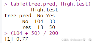 用训练集建立分类树,在测试集上评估此树的预测效果