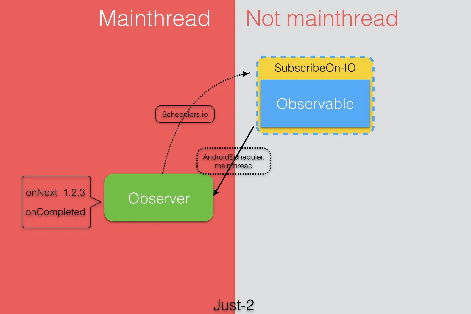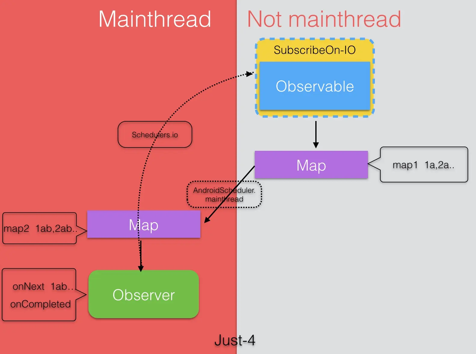 - 计算所使用的 Scheduler。这个计算指的是 CPU 密集型计算,即不会被 I/O 等操作限制性能的操作,例如图形的计算。这个 Scheduler 使用的固定的线程池,大小为 CPU 核数。不要把 I/O 操作放在 computation() 中,否则 I/O 操作的等待时间会浪费 CPU。