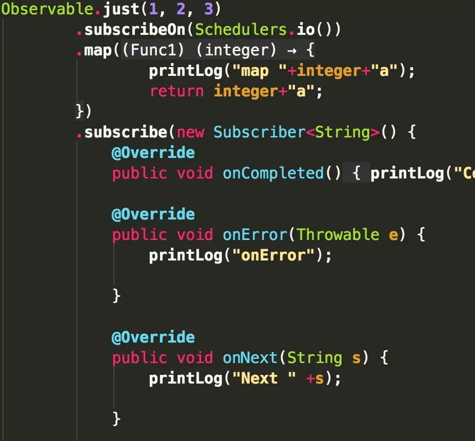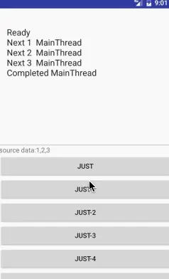 以下几个例子都是使用Observable.just(1,2,3)创建被观察对象,观察者输出1,2,3.
