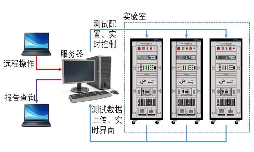实验数据实时分享至服务器后台,实验员通过与服务器的远程连接,就可以实现测试的远程操作和监控、报告的查询和分析。