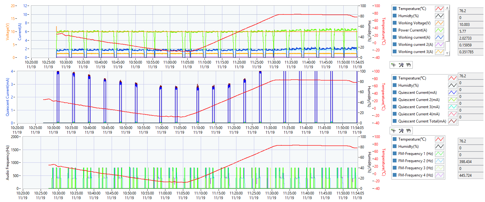 另外,环境箱控制、各种激励的设置和响应的监控,都按照预先设定的测试序列和参数运行,运行过程如果出现异常还可以及时通知预警。