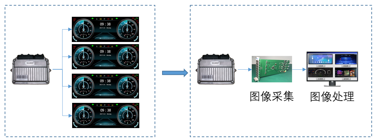 怿星自研的LVDS图像采集板,一块板卡替代4块屏幕的同时把图像采集到上位机,不单取代了屏幕,同时也把显示内容的判断一起解决了。