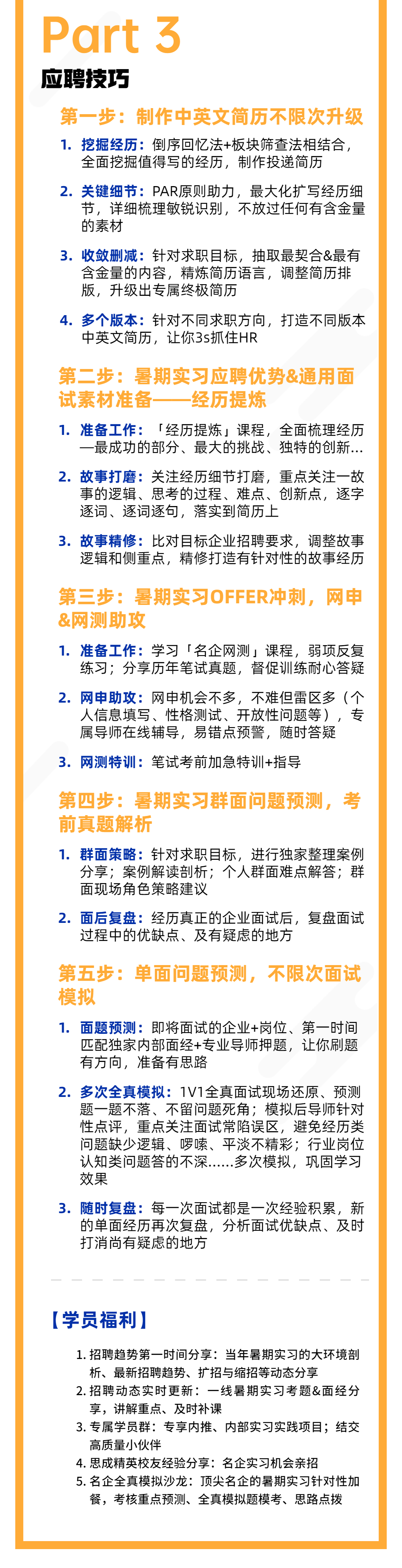 所以一定要把握住节奏、高效且有针对性的准备好简历、笔试、群面、单面,这样在真正打仗的时候,才能游刃有余。