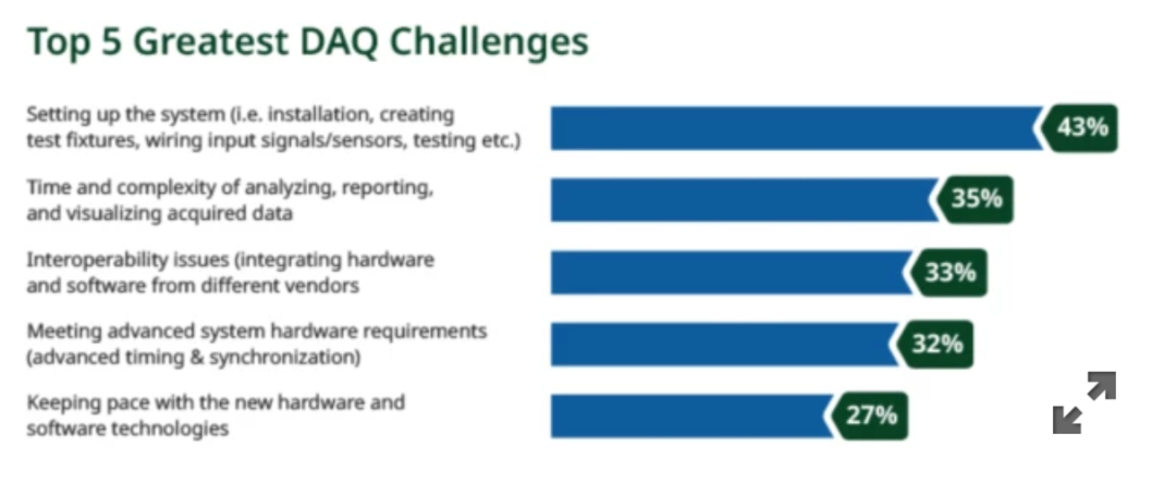 在NI对DAQ市场(涵盖NI客户和非客户)的一项调查中,43%的受访者指出,他们面临的主要挑战是系统的设置过程。初期遇到的挫折感往往成为采用新工具的障碍。