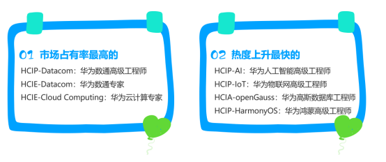 1)华为认证分为多个方向,涵盖所有ICT领域,全球范围内认证种类最全