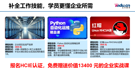 7)HCIA+HCIP+HCIE+实验集训课,全阶段课程直播,学员满意度高;领先于行业中大部分课程录播