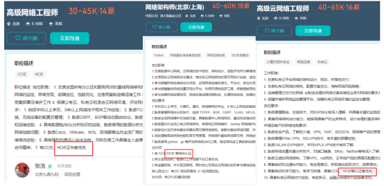 - HCIE认证已成为大企业招聘必备
