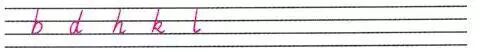 5.小写字母b,d,h,k,l的上端顶第一条线,占上面两格。