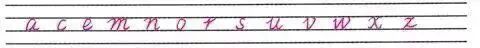 4.小写字母a,c,e,m,n,o,r,s,u,v,w,x,z要写在中间的一格里,上下抵线,但不要出格。