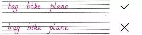 9.写单词时,字母与字母之间的间隔要均匀、适当,不能过于紧密也不能分离太远。