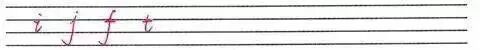 6.小写字母i和j的点,f和t的上端都在第一格中间,f和t的第二笔紧贴在第二条线下。