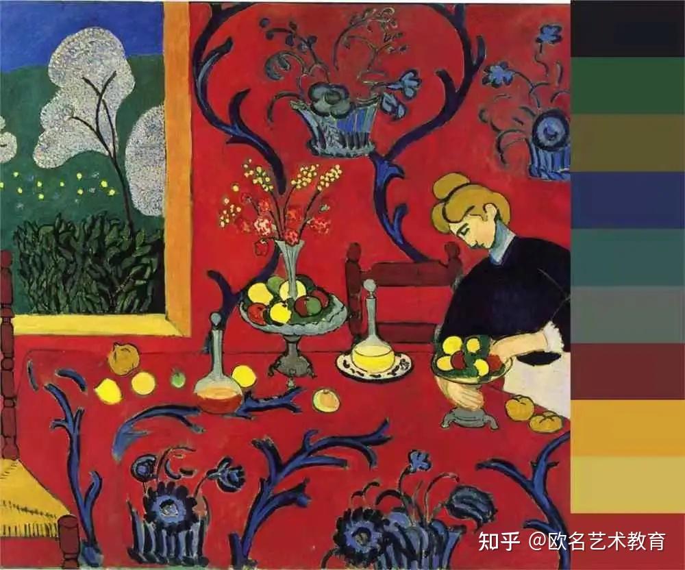 一般来说,冷暖色是马蒂斯配色的主旋律,鲜艳至极的红色,色彩饱满的橘色,靓丽浓郁的黄色等,共同构成了马蒂斯暖配色。