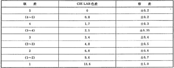 纸片或布片应是白色或中性灰色,并应是用带有镜面反射的分光光度计测定,色度数据以CIE1964补充标准色度系统(10°视场)和D65光源计算。每对第一组成的三刺激值Y不应低于85。每对第二组成与第一组成色差规定见下表。括号内数值仅使用五级九挡灰卡。