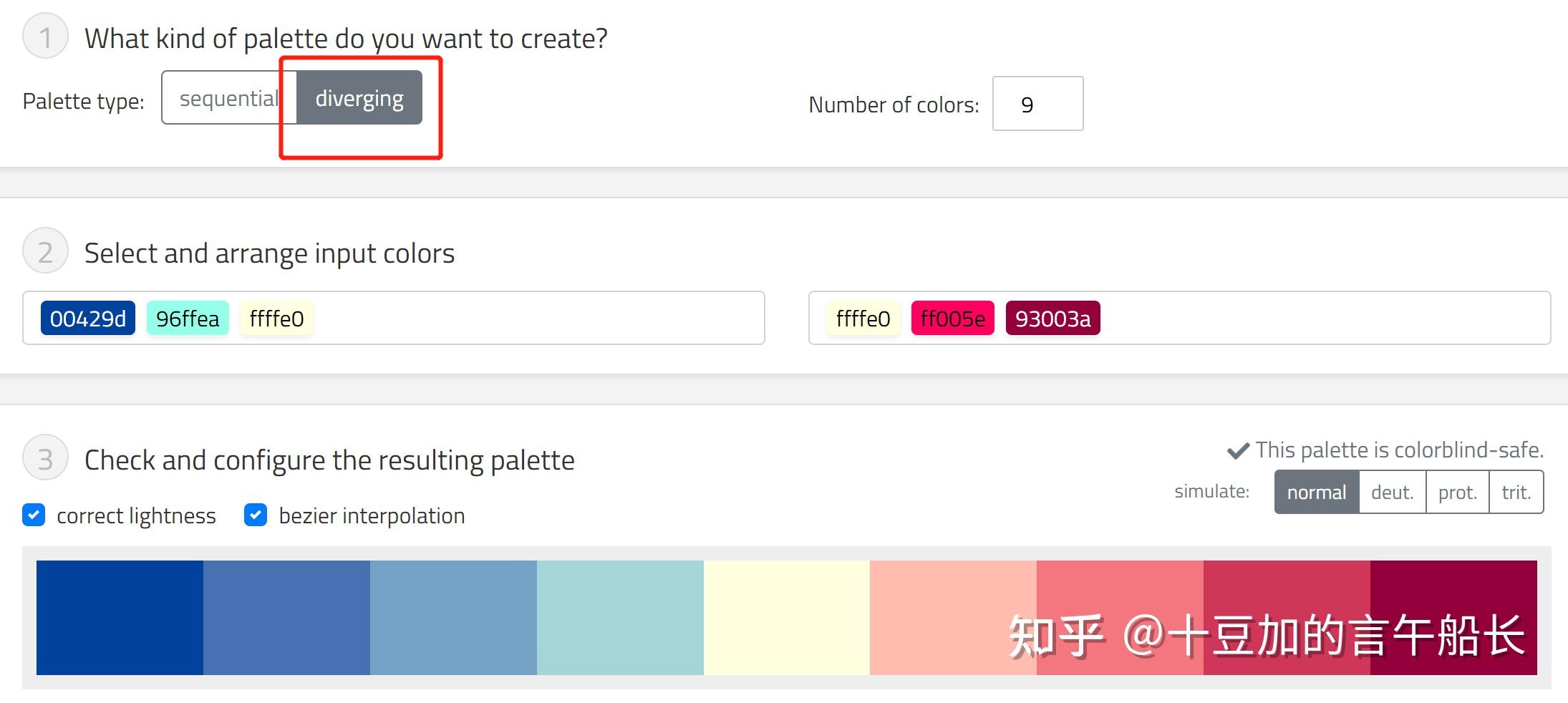 右上角【simulate】可以改不同组合颜色,过度很均匀
